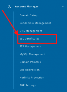 Log in op uw DirectAdmin account en ga naar “SSL Certificates”;