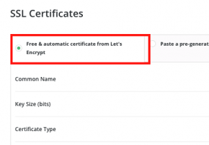 Kies hier op zijn minst “mail.uwdomeinnaam.tld“. Maar het is meestal verstandig en handig om gelijk ook “uwdomeinnaam.tld” en “www.uwdomeinnaam.tld” te kiezen als optie. Zo kan later uw website ook profijt hebben van dit certificaat. U kunt er zelfs voor kiezen (optioneel) om subdomeinen zoals imap en smtp toe te voegen. (Ook is het mogelijk om een “wildcard” certificaat te verkrijgen. Hierop gaan we in dit artikel niet verder in.)