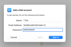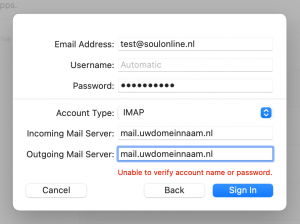 Vervolgens kunt u uw mailservers instellen. De hostname is “mail.uwdomeinnaam.tld“. Klik vervolgens op “Sign in”: