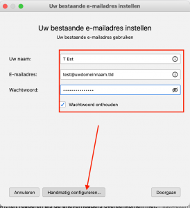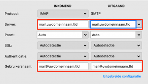 U dient uw mailserver “mail.uwdomeinnaam.tld” in te vullen (verander “uwdomeinnaam.tld” vanzelfsprekend met uw eigen domeinnaam waar u mee wilt mailen).