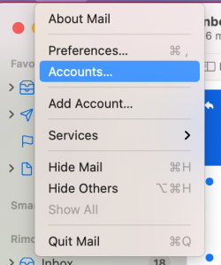 Start via “Launcher”, “Finder” of de balk onder in beeld het programma “Mail” op. Kies vervolgens links boven in beeld voor “Accounts…”