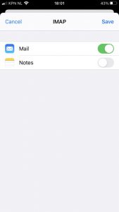N.B. Wij raden enkel aan om IMAP te gebruiken en raden het POP-protocol af omdat dit leidt tot verschillen in mailboxen (POP is niet gemaakt voor meerdere apparaten tegelijk).